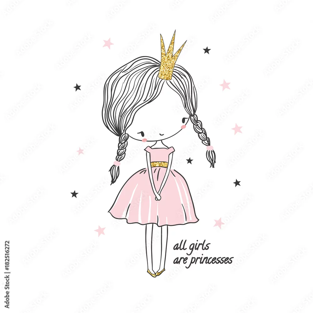 Fototapeta Urocza mała księżniczka. Ilustracja moda dla dzieci