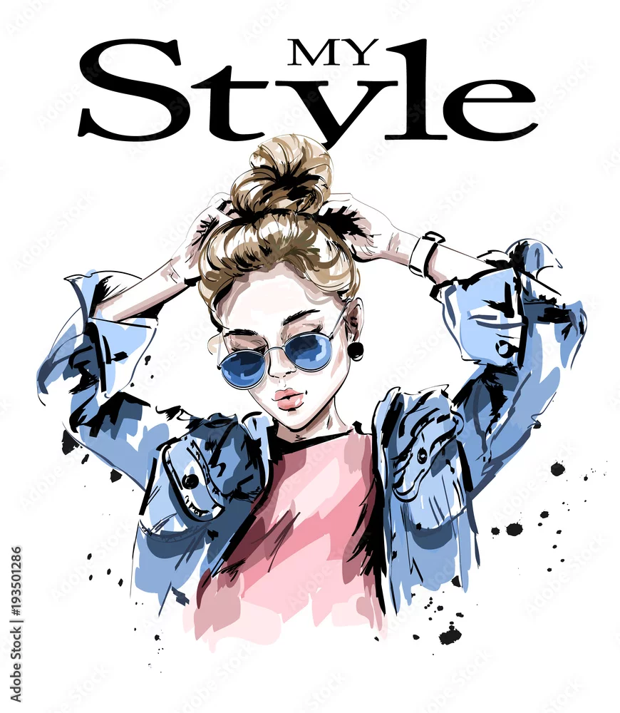 Fototapeta elegancka, piękna, młoda kobieta w okularach przeciwsłonecznych, szkic