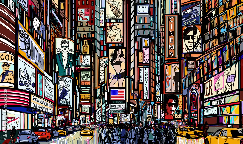 Fototapeta ulica w Nowym Jorku, w stylu komiksu