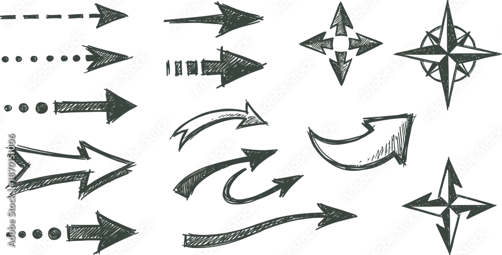 Fototapeta Arrows hand drawn for architectural site plans vector illustration - do architekta - Picturewall.pl