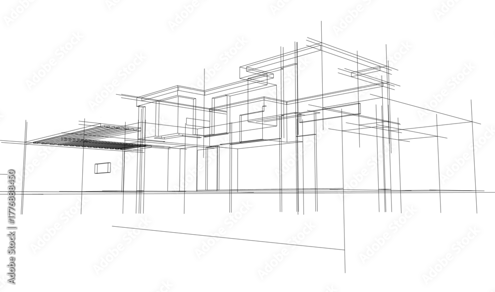 Fototapeta House sketch architectural 3d rendering