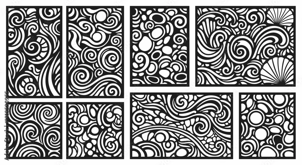 Fototapeta Organic Swirl Pattern Screen Panels for Decorative CNC Laser Cutting