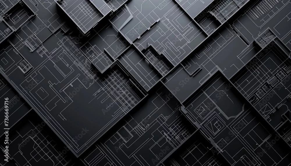 Fototapeta Abstract black architecture plans background from above, building engineering blueprints backdrop - do architekta - Picturewall.pl