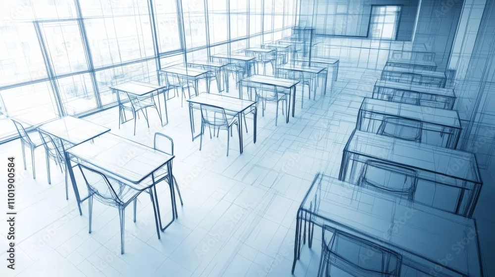 Fototapeta Architectural Blueprint of a Modern Classroom Design