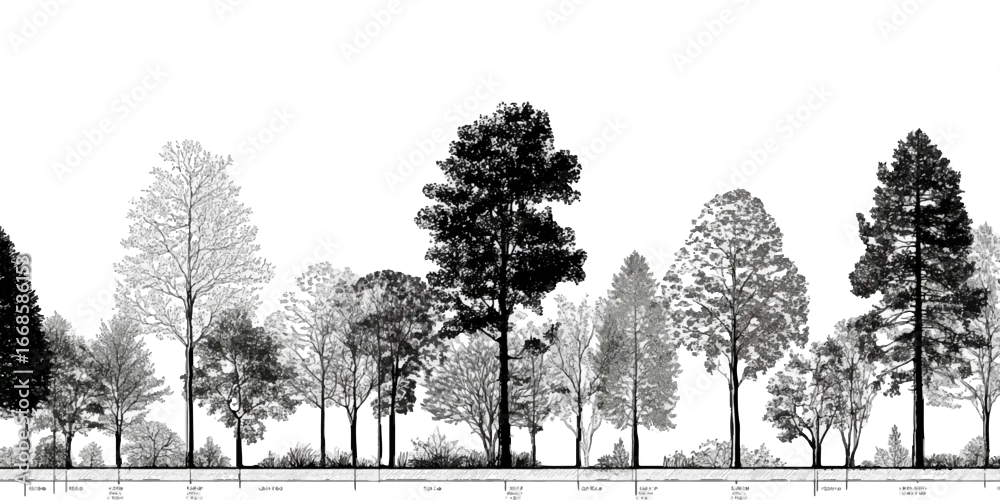 Fototapeta Architectural Drawings, Minimal style cad tree with roots line drawing and Tree Grunge vector, view, set of section wetland forest outline for landscape design drawing.