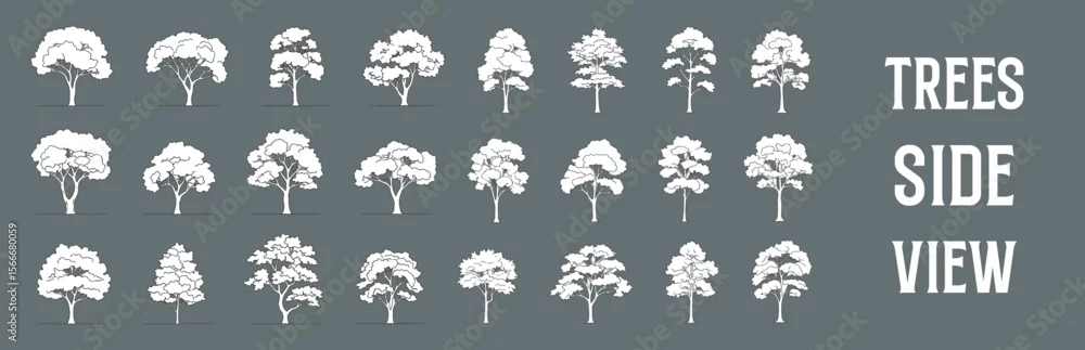 Fototapeta Architectural Drawings Treed vector illustration, side view, trees Minimal style hand drawn. Sections, Elevations, Floor Plans - do architekta - Picturewall.pl