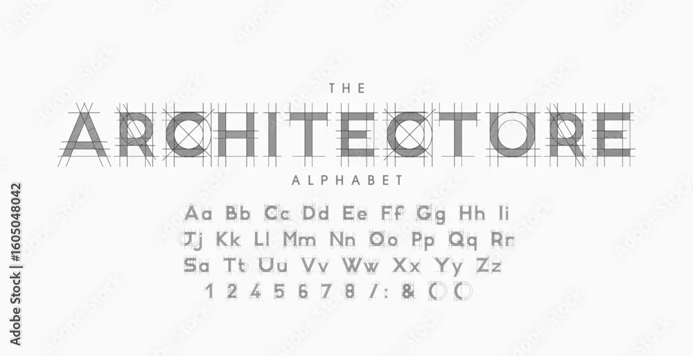 Architecture Blueprint Display Font . Technical Drafting Style Alphabet. Geometrical typography. Wireframe letters, typographic design with draft strokes for architecture logo and headline. Isolated