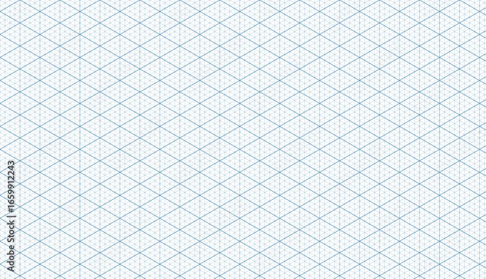 Fototapeta Blue isometric triangle grid paper. Vector background template for blueprints, architectural plans and technical graphics. Rulers, guides and precise marking.