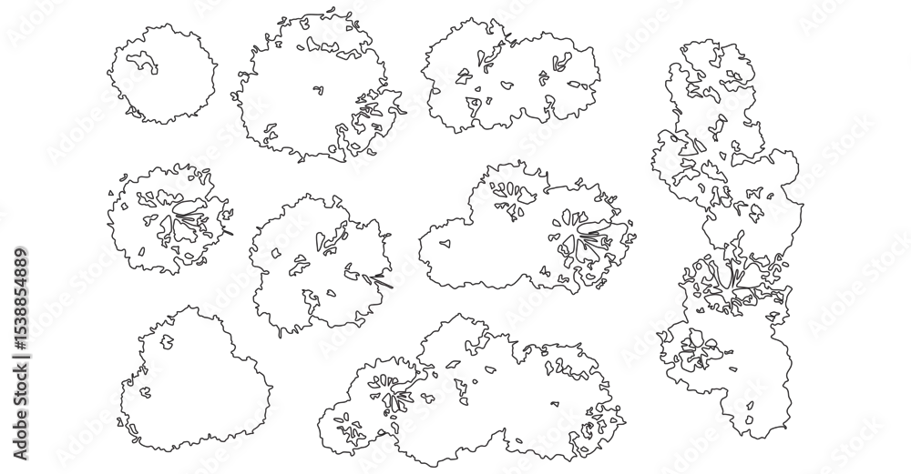 Fototapeta Floral Outline Illustrations of Small and Large Bushes - do architekta - Picturewall.pl