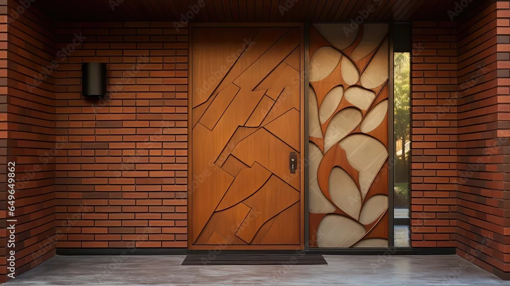 Fototapeta home safety door with wooden exterior geometric shapes design - do architekta - Picturewall.pl