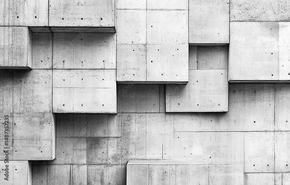 Fototapeta Monochromatic concrete blocks showcasing modern architectural facade design