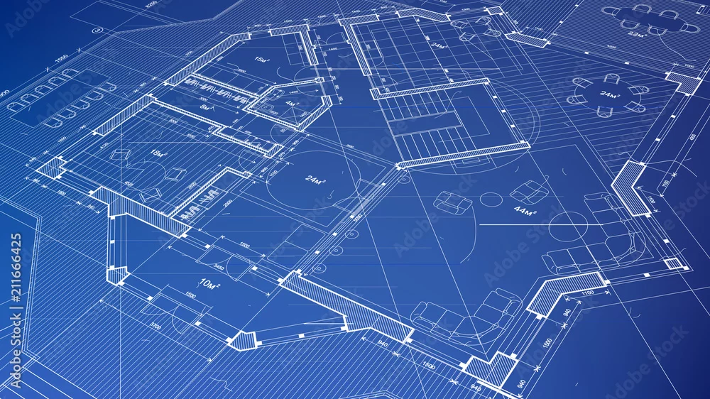 vector architectural plan - abstract architectural blueprint of a modern residential building / technology, industry, business concept illustration: real estate, building, construction & architecture