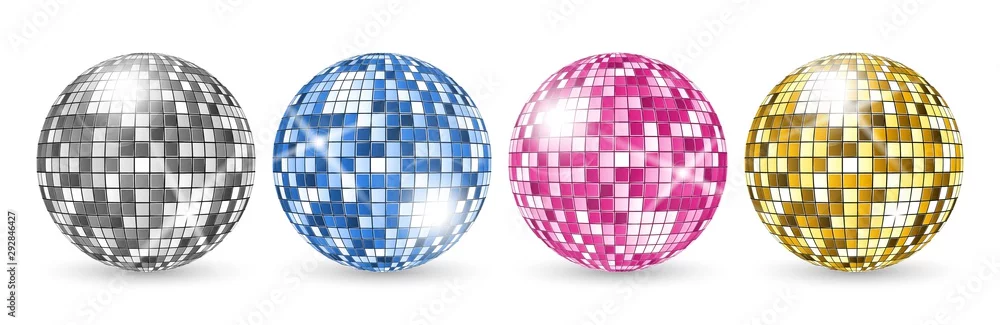 Fototapeta Disco ball. Party mirror balls set. Night club shining decoration vector. Illustration mirror bright disco ball for music club - do dyskoteki - Picturewall.pl