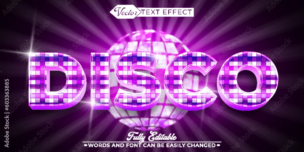 Fototapeta Purple Shiny Mirror Ball Disco Vector Editable Text Effect Template - do dyskoteki - Picturewall.pl