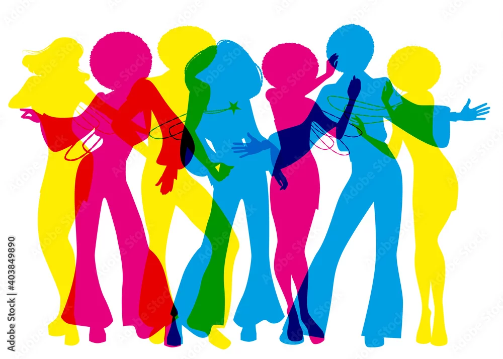 Fototapeta Soul Party Time. Dancers of soul, funk or disco on white background - do dyskoteki - Picturewall.pl