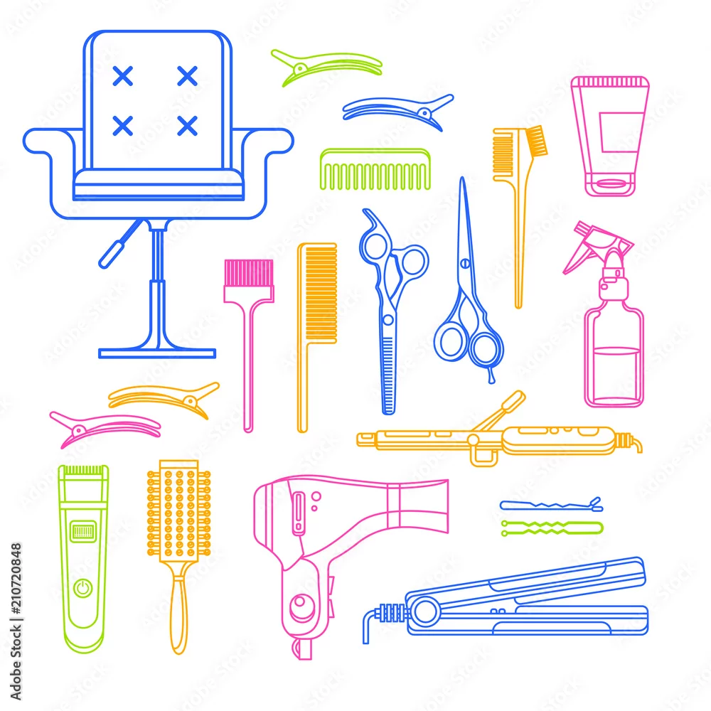 Fototapeta Beauty salon vector linear icons and design elements. Hair hairdresser tools and equipment isolated on white background - do fryzjera - Picturewall.pl