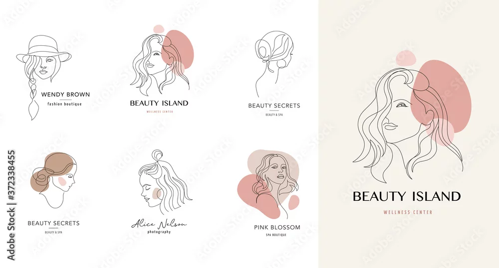 Vector logo and branding design templates in minimal style, for beauty center, fashion studio, haircut salon and cosmetics - female portrait, beautiful woman's face