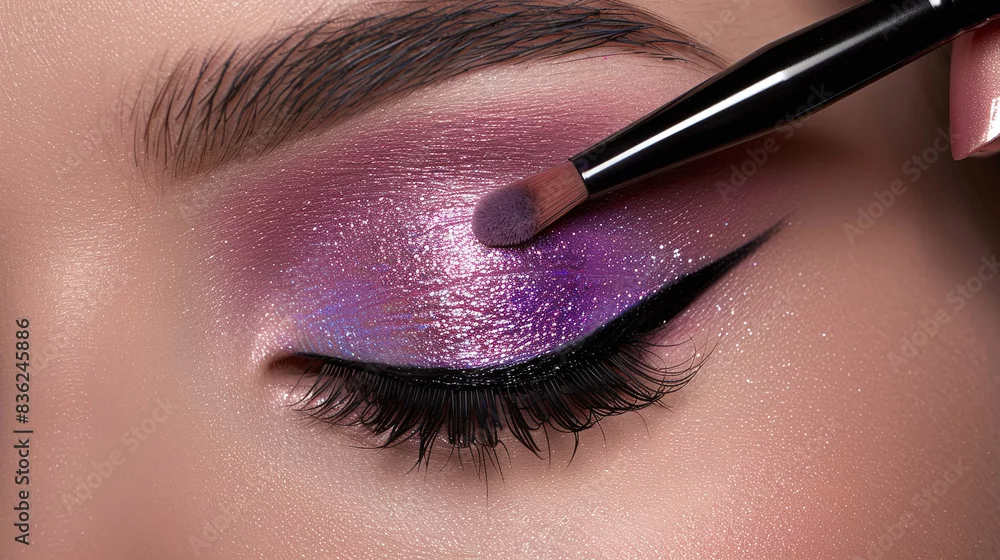 Fototapeta Beautiful woman with professional makeup. Female closed eye close-up. Eye makeup for eyebrows and eyelashes.