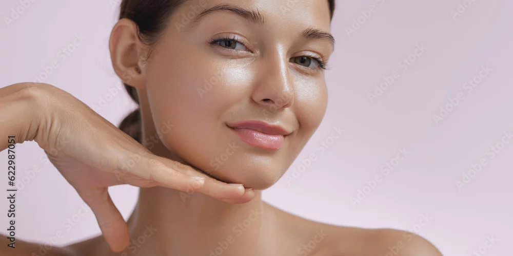 Fototapeta Beauty Photo of Woman with Clean and Healthy Skin Touching Her Face - do gabinetu kosmetycznego - Picturewall.pl