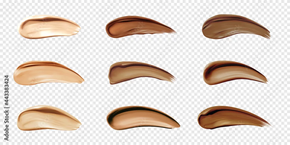 Cosmetic foundation swatches, smears of liquid concealer for makeup isolated on transparent background. Vector realistic set of light and dark bb cream smudges, beige and brown cosmetic strokes