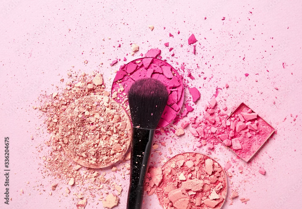 Fototapeta Crushed face powders and makeup brush - do gabinetu kosmetycznego - Picturewall.pl
