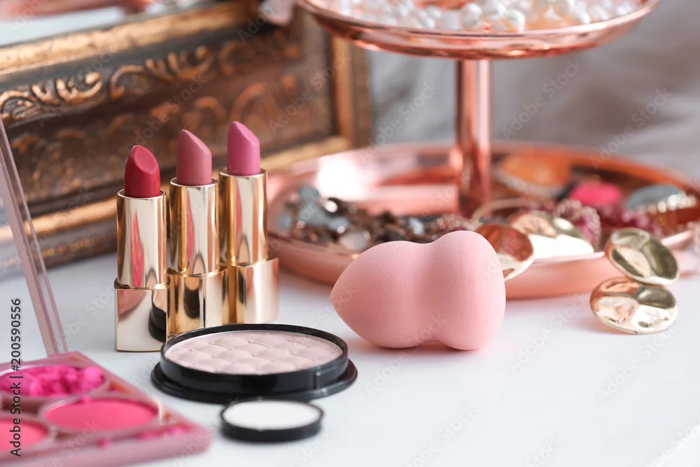 Fototapeta Decorative cosmetics on dressing table in makeup room - do gabinetu kosmetycznego - Picturewall.pl