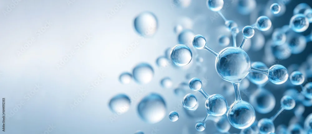 Fototapeta Scientific molecule structure banner, peptide bond formation, cosmetic nanoscience, skincare innovation, biomedical background, anti-aging research, active ingredient design, copy space - do gabinetu kosmetycznego - Picturewall.pl