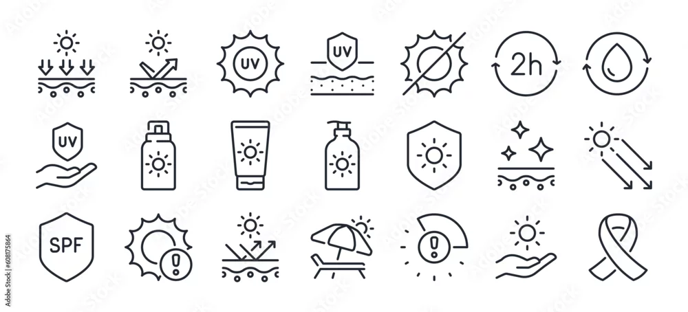 Fototapeta Sunscreen and uv protection concept editable stroke outline icon isolated on white background flat vector illustration. Pixel perfect. 64 x 64. - do gabinetu kosmetycznego - Picturewall.pl