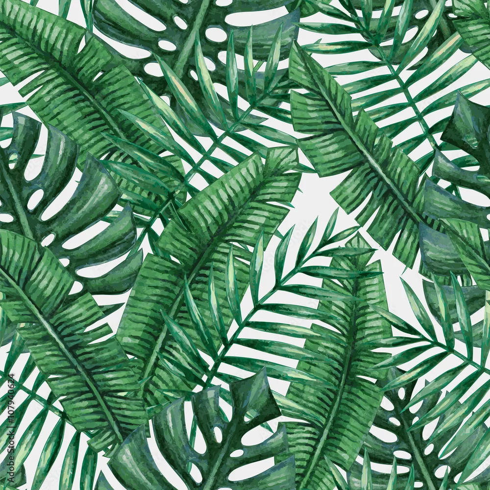 Fototapeta Akwarela tropikalny palmy pozostawia wzór. Ilustracji wektorowych.