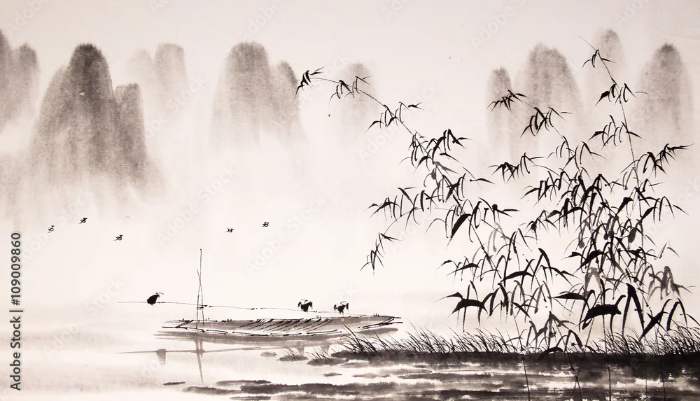Fototapeta Malarstwo tuszem chiński pejzaż