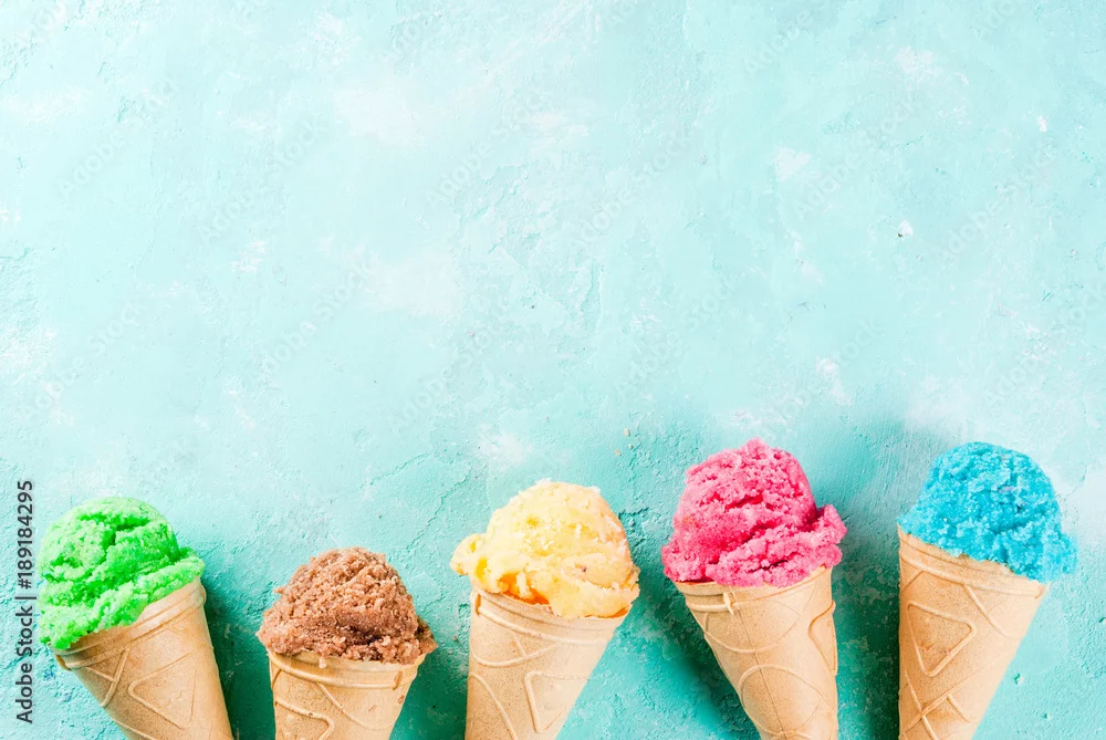 Fototapeta kolorowe lody w wafelkach