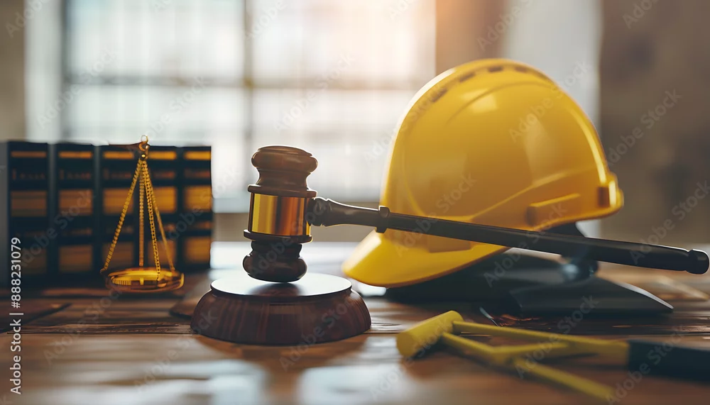 Fototapeta Judge's hammer and helmet Law and Justice about labor law concept Construction law. - do kancelarii prawnej - Picturewall.pl