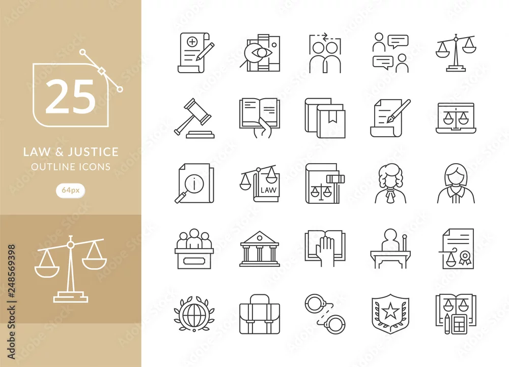 Law and Justice icons. Law and justice icon set suitable for info graphics, websites and print media. Modern thin line icons of law and lawyer service