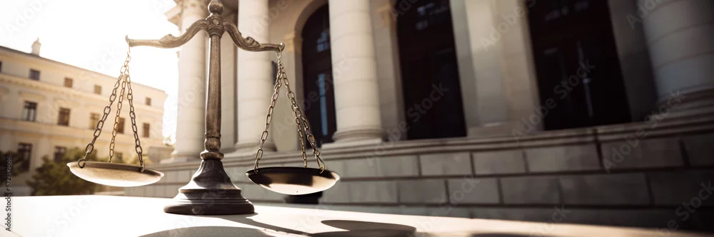 law firm consultation, legal advice service, family criminal social statute justice concept, scales in front of supreme court house building, abstract background banner with copy space