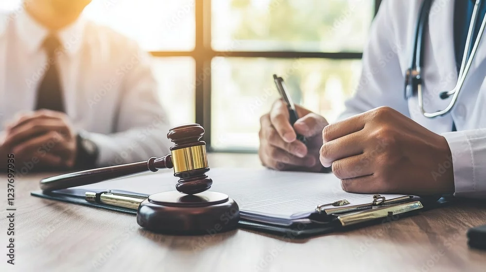 Fototapeta mental health law, Latina attorney discussing mental health law with a patient, compassionate, warm office ambiance