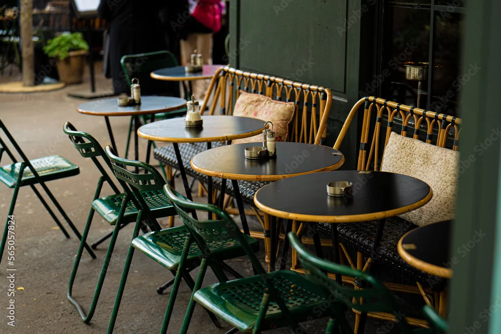 Fototapeta cafe tables and chairs in french cafe - do kawiarni - Picturewall.pl