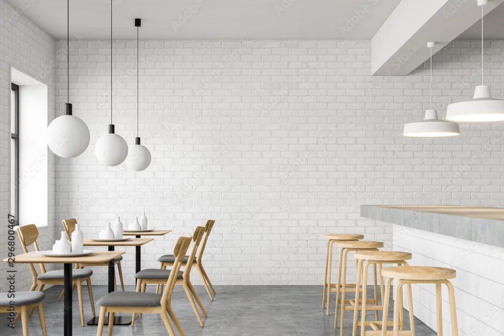 Fototapeta Widok z boku stylowego baru ze stolikami