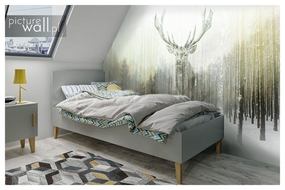 Fototapeta Zimowy las przenosi pokój dziecka w bajkowy świat zimowej przyrody. Motyw przedstawiający sarny, zające i sowy w ośnieżonym lesie tworzy atmosferę spokoju i magii, zachęcając do marzeń o zimowych przygodach.