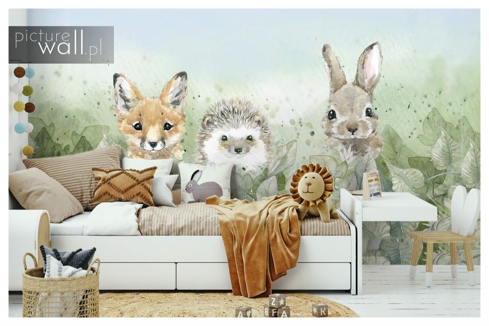 Fototapeta Zwierzątka to urocza dekoracja ścienna, idealna do pokoju dziecka. Motyw przedstawiający leśne zwierzątka w pastelowej kolorystyce wprowadza do wnętrza atmosferę spokoju i przytulności, sprzyjając wyciszeniu i relaksowi.