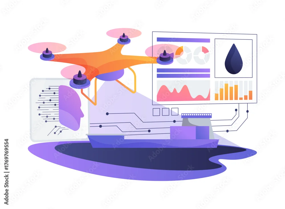 Fototapeta AI-Guided Oil Spill Trajectory Forecasting abstract concept vector illustration.