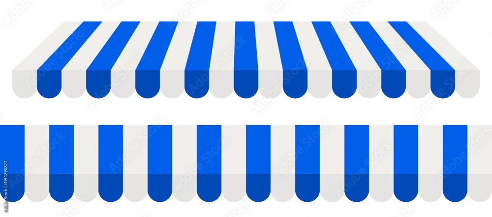 Fototapeta Blue and white striped shop awning. Vector illustration of a store or market canopy isolated on transparent background.