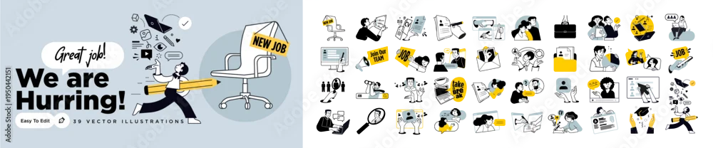 Fototapeta Business vector illustrations of human resources, career, job search, employment, CV and business skills. Concepts for graphic and web design, social media, business and marketing material. - do przedpokoju - Picturewall.pl