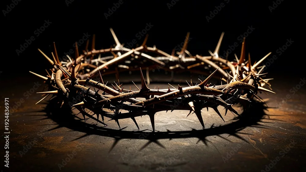 Fototapeta Crown of Thorns on Dark Surface with Dramatic Lighting, Good Friday Passion of Christ Symbol, Christian Easter Faith Concept Background