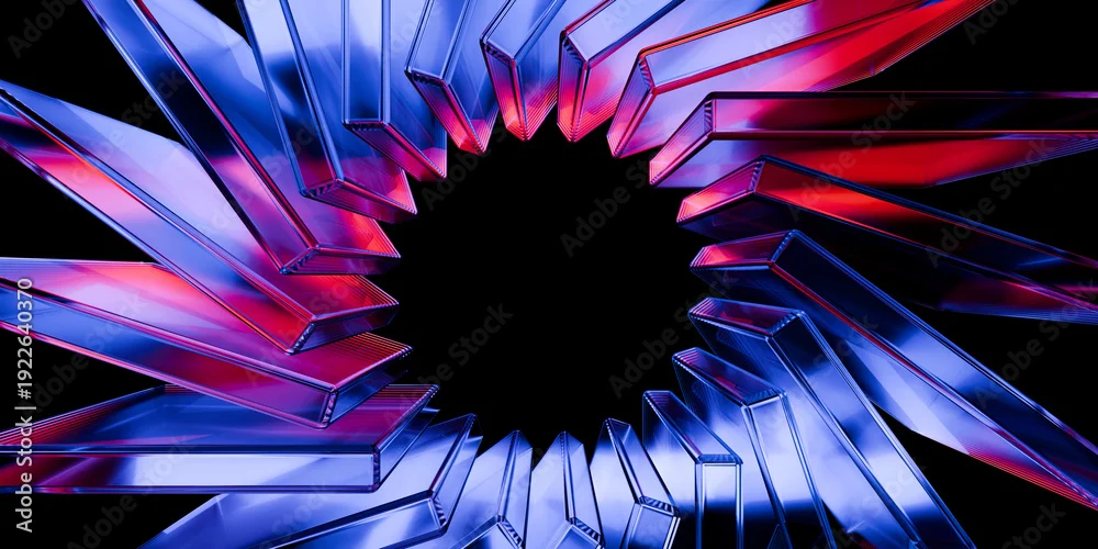 Cyber futuristic transparent glass plane elements and liquid acrylic red purple blue glow on black backdrop cinematic tech background design cover art visuals 3d rendering