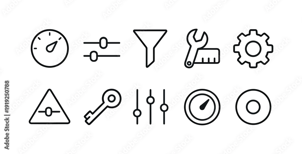 Fototapeta Dashboard, settings icon set. Functional control icons in outline style collection.