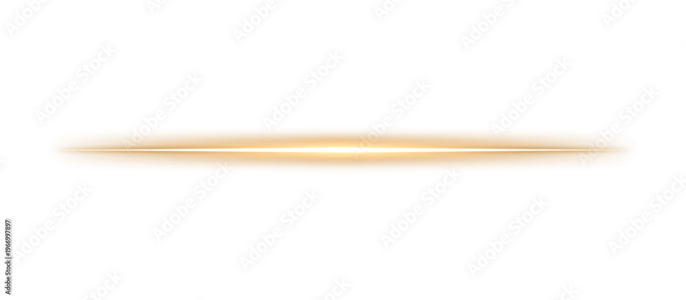 Fototapeta Glowing golden horizontal light line beam with soft yellow shine and blur effect on transparent background for overlay, divider, border, poster, banner, template, creative graphic design elements, PNG - do przedpokoju - Picturewall.pl
