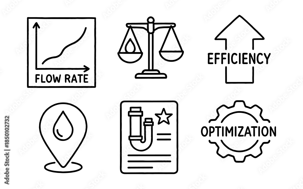 Fototapeta Hand drawn water management symbols with efficiency and optimization concepts