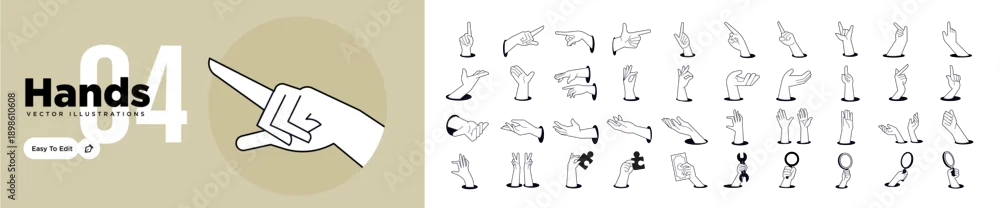 Hands illustrations. Vector concepts of hands showing different gestures. Creative illustrations for graphic and web design, marketing, business presentation, social media.