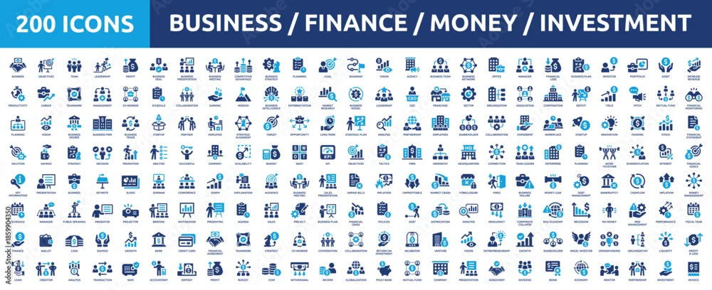 Fototapeta Huge set of 200 solid icons. Mega collection concept of business, finance, money, investment, accounting. Vector illustration.