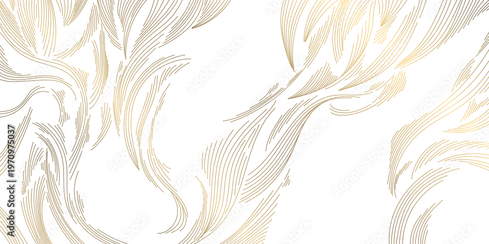 Fototapeta Modern abstract wave oriental pattern, flowing golden lines on white background, Japanese and Chinese design. Elegant vector illustration, clouds, water flow. Luxury packaging, interior design.